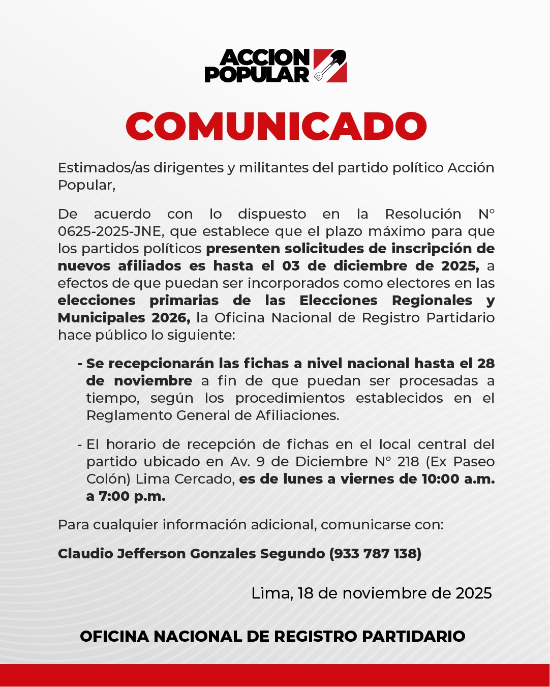 | COMUNICADO 01 - OFICINA NACIONAL DE REGISTRO PARTIDARIO | Visualizar | Descargar |